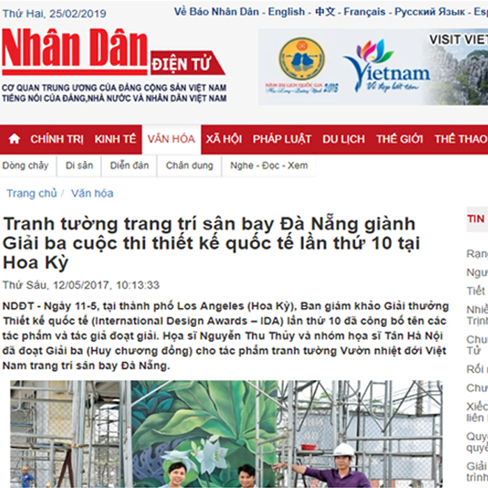 Tác phẩm Tranh tường sân bay Đà Nẵng đã đạt giải 3 cuộc thi thiết kế lần thứ 10 tại Hoa Kỳ