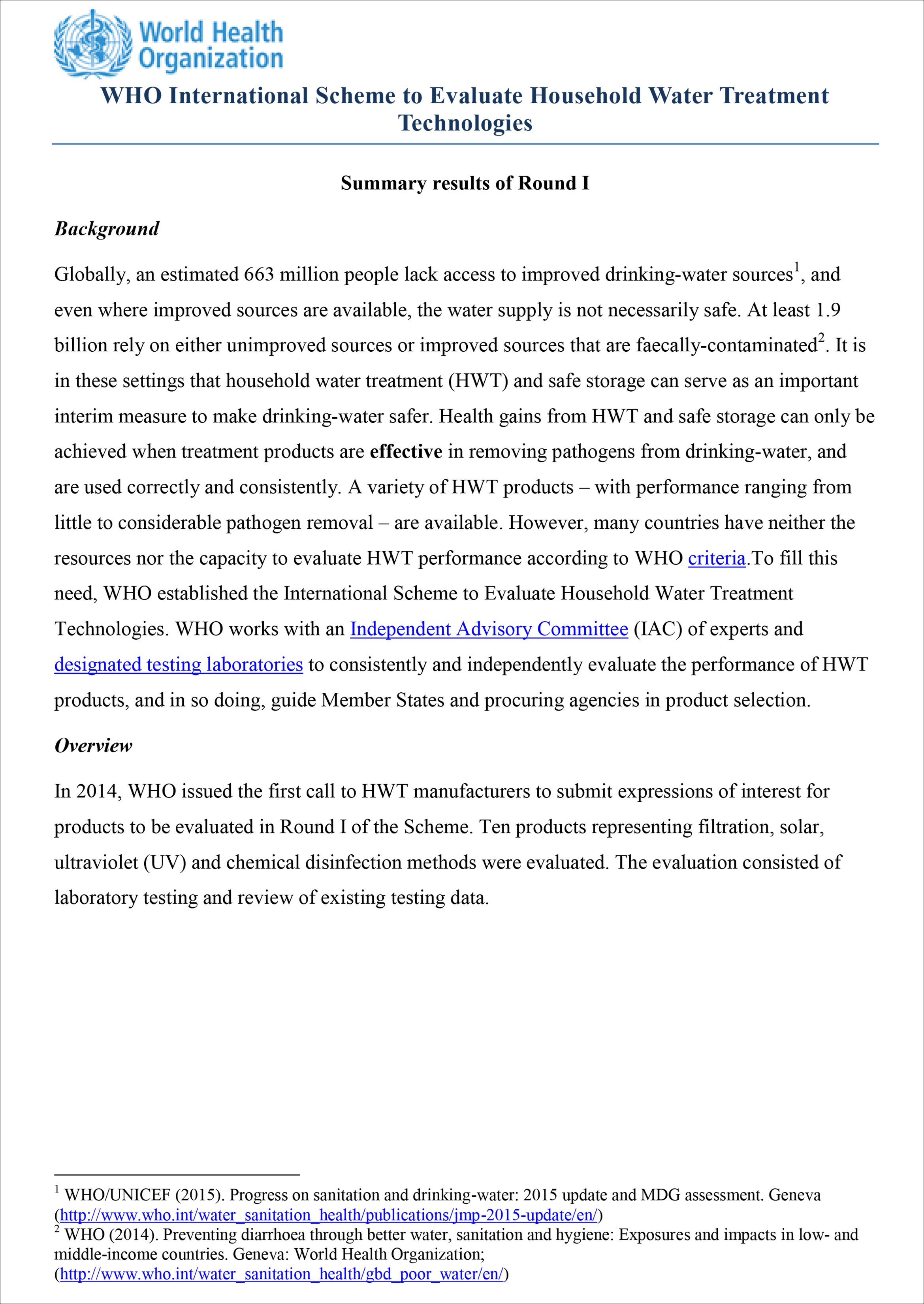 Đánh giá của Tổ Chức Y Tế Thế Giới (WHO) về Thiết bị lọc Nước, Xử lý Nước Lifestraw – Thụy Sĩ